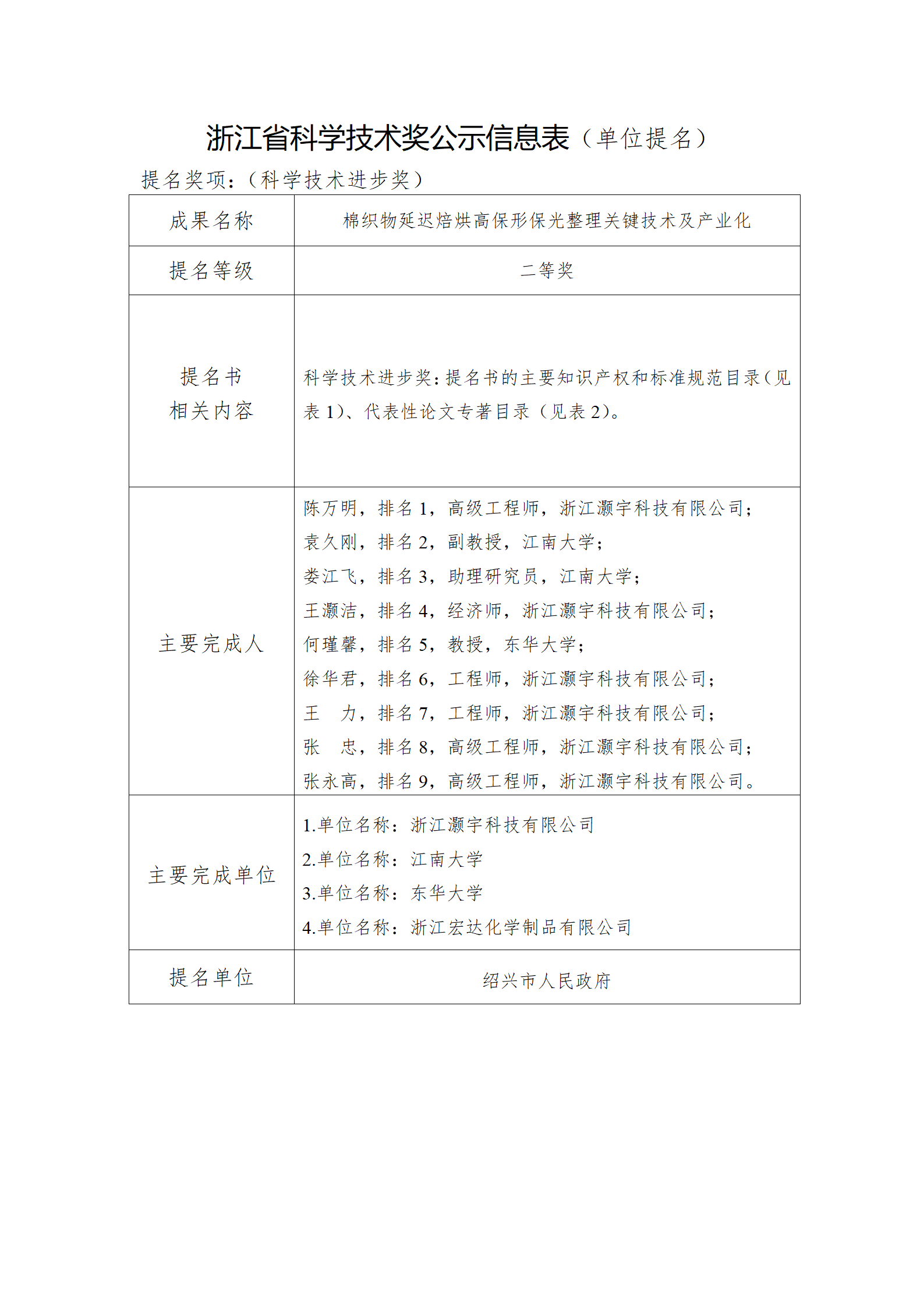 參與申報2022年度浙江省科學技術(shù)獎項目公示